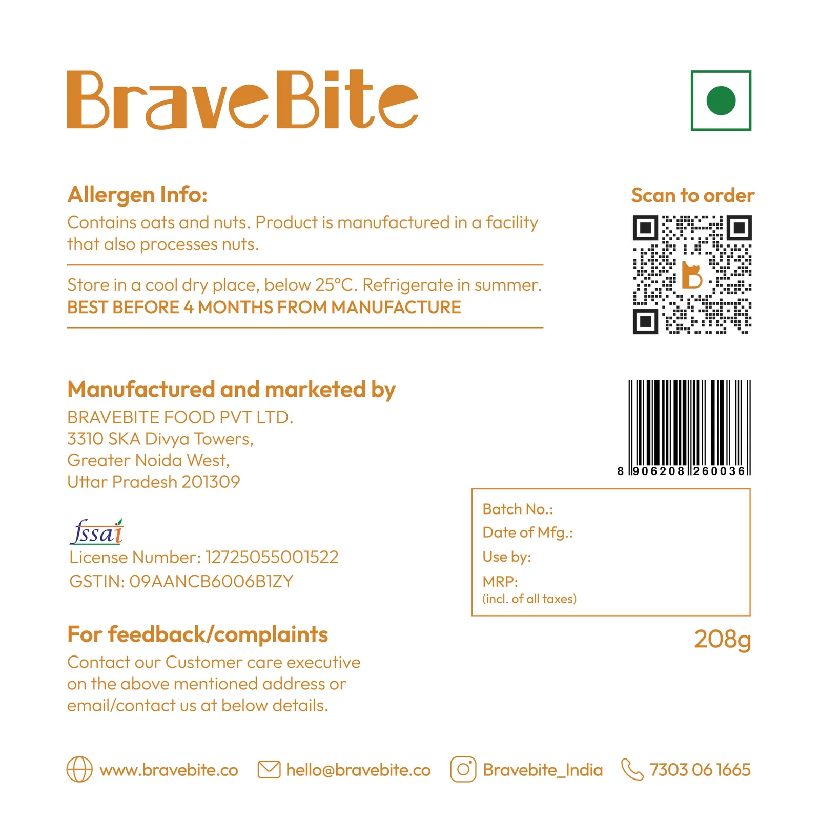 It’s made using nutrient-dense flours, healthy fats, and natural sweeteners — free from refined flour, refined sugar, and artificial ingredients — offering balanced nutrition with indulgent taste.